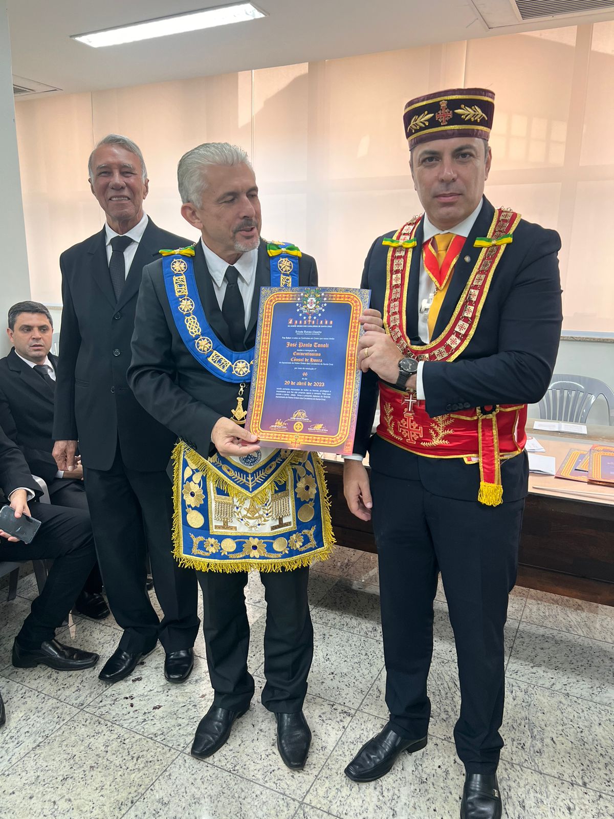 A cerimônia contou com a presença do Grão-Mestre Estadual eleito, José Paulo Tonoli e do Grão-Mestre Estadual Adjunto eleito, Derildo Martins da Costa.