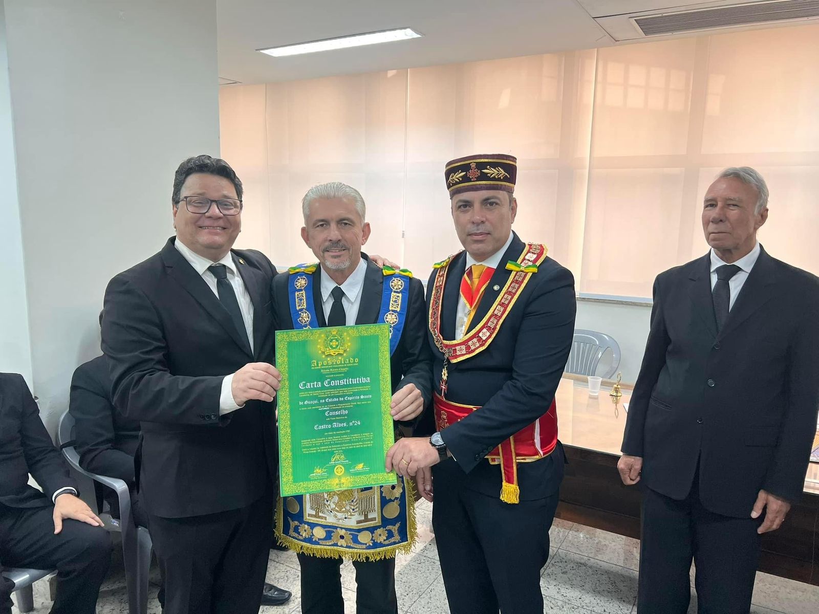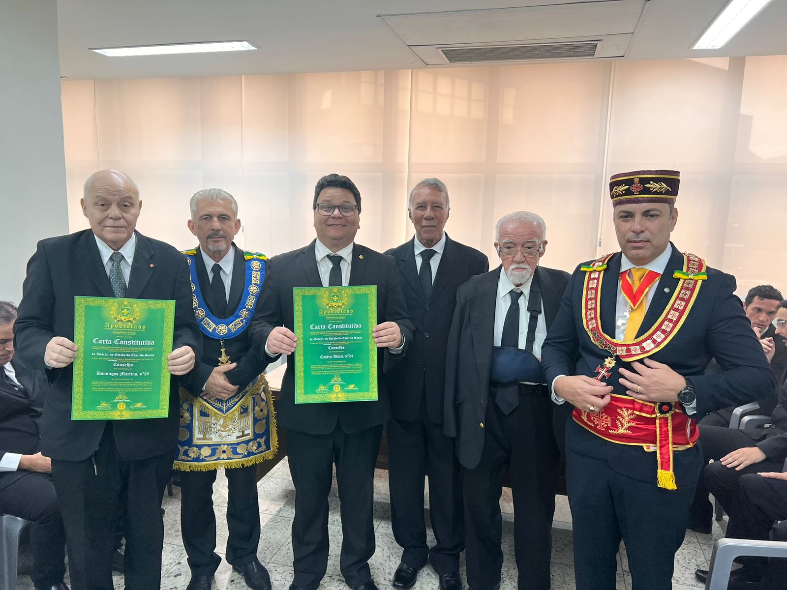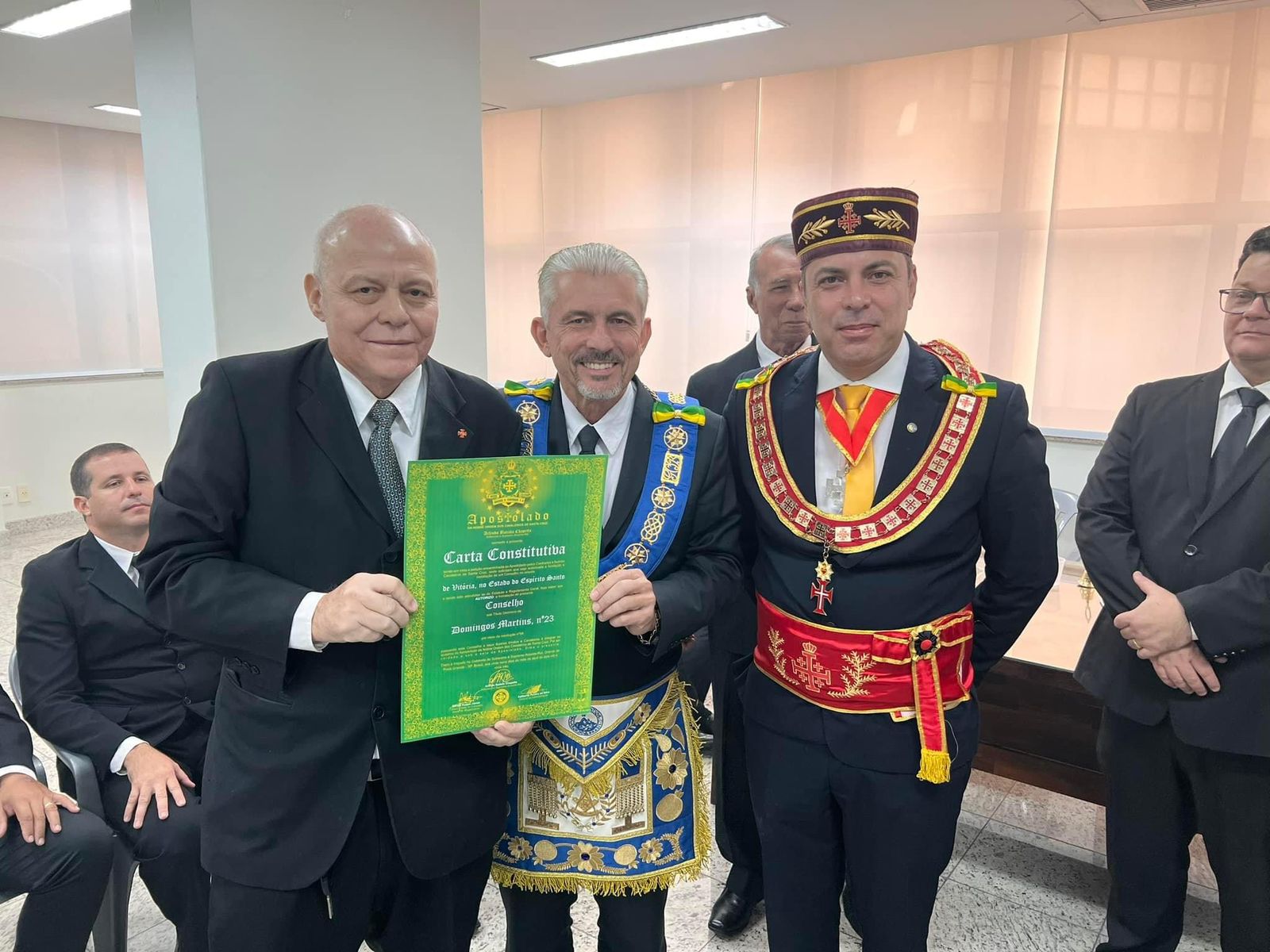 Os Conselhos serão presididos pelos Confrades Guilherme Antônio Monteiro Gomes (Domingos Martins) e Marcelo Pavesi Lopes (Castro Alves) que receberam as respectivas Cartas Constitutivas das mãos do Soberano irmão Arlindo Chapetta e do Eminentíssimo irmão José Paulo Tonolli.