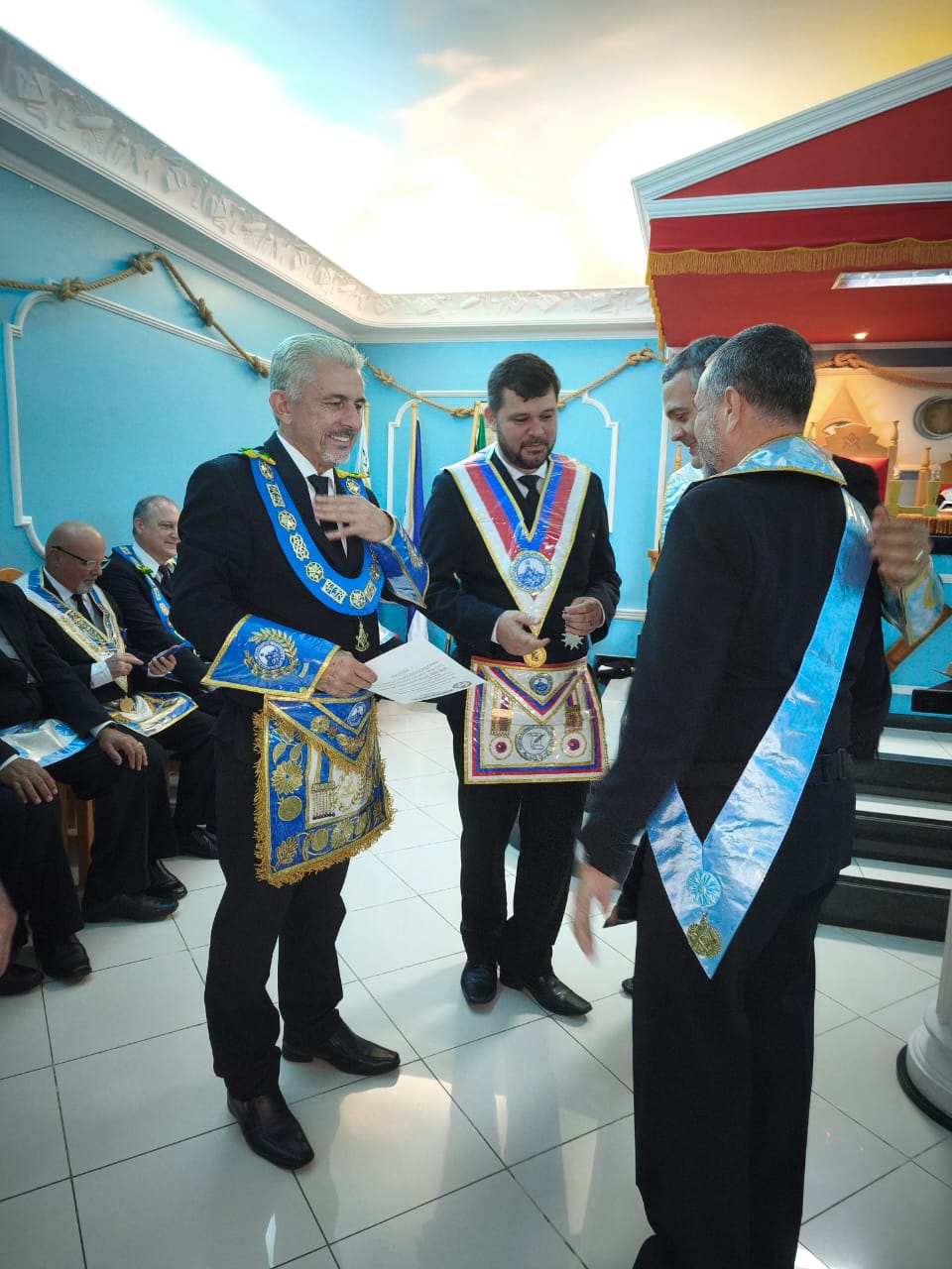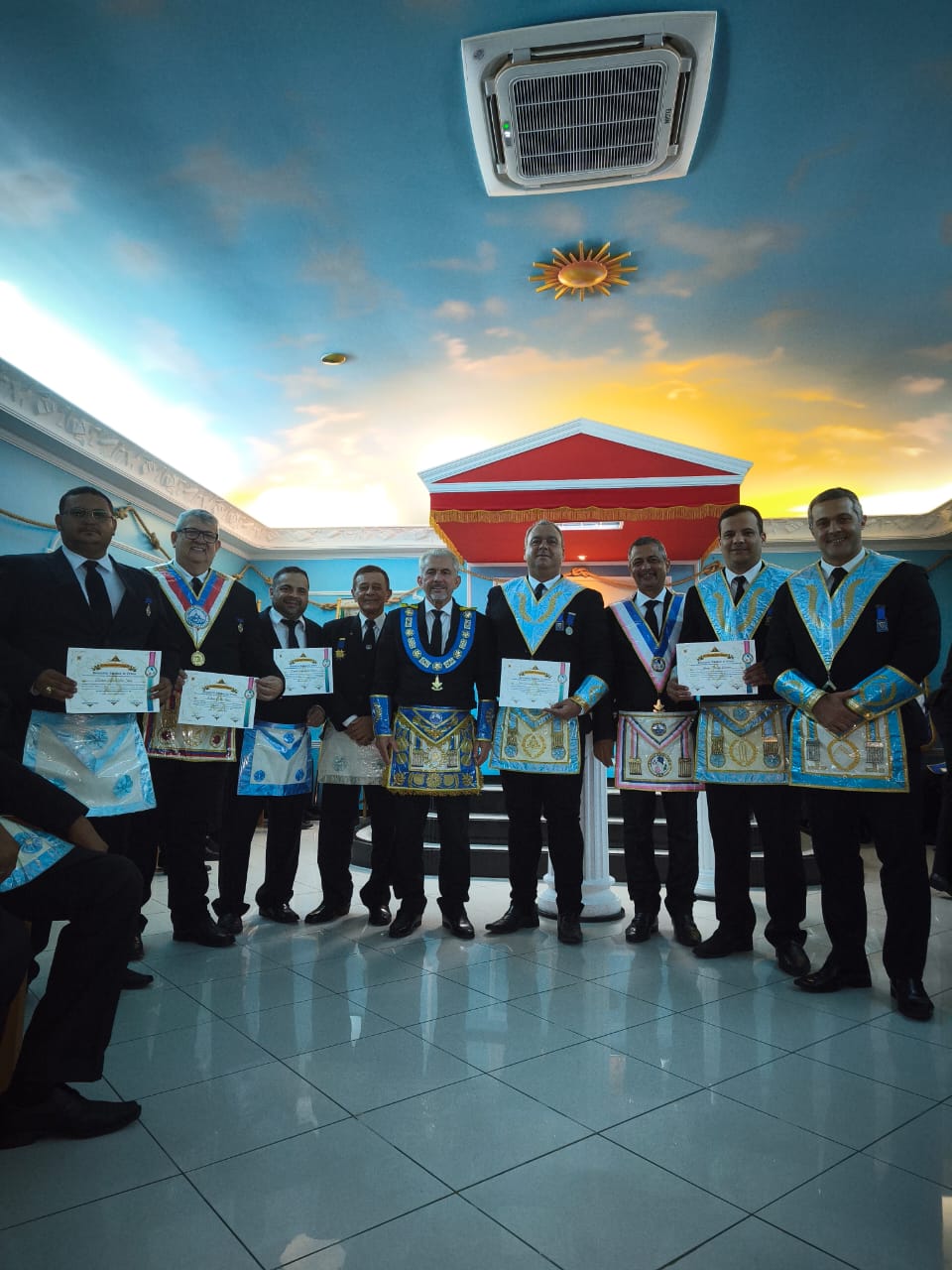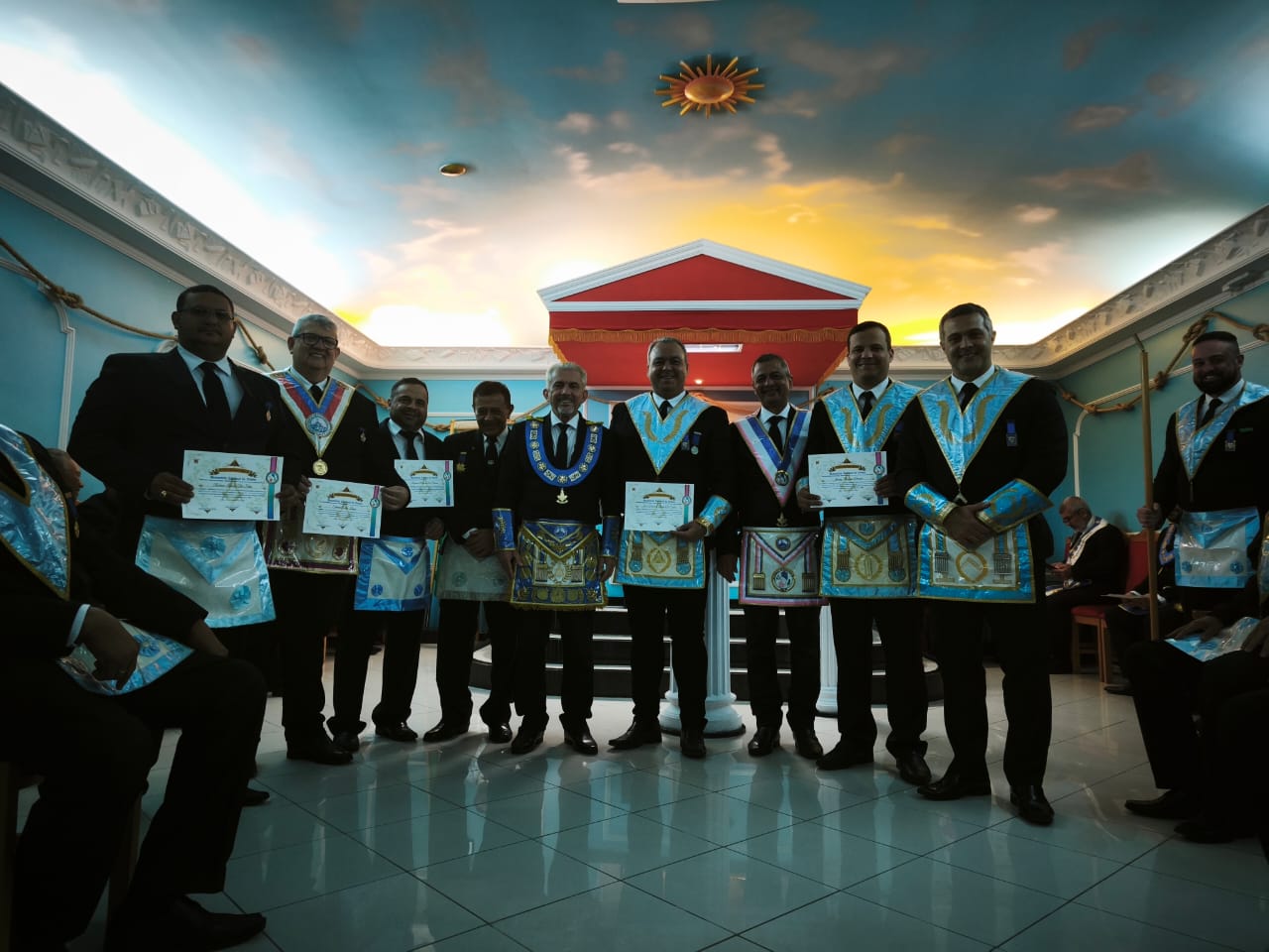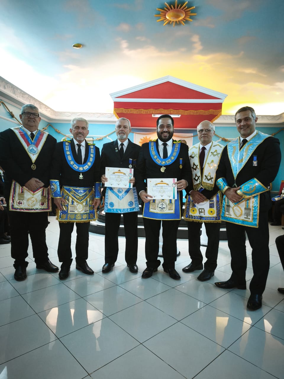 Durante a sessão, foram entregues diversas distinções em reconhecimento à dedicação, constância e serviços prestados pelos obreiros ao longo de suas jornadas maçônicas.